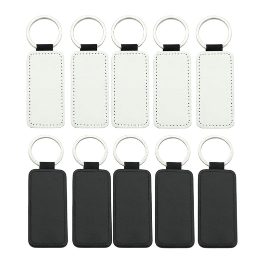 10Pcs Leather Keychains Blank Heart Round Square
